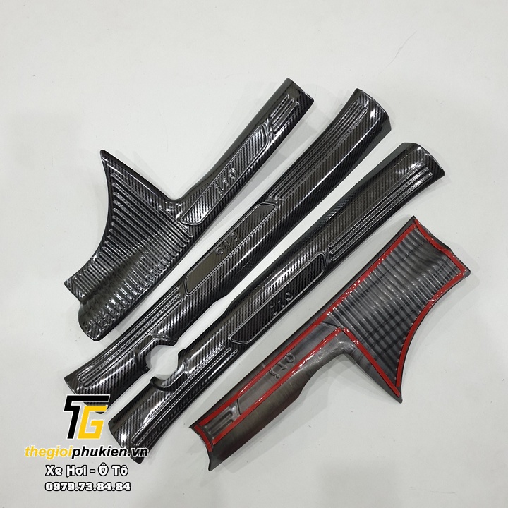 Ốp bậc cửa, Nẹp bước chân trong ngoài CARBON xe Hyundai Grand I10 2021 2022 vân Cacbon cao cấp