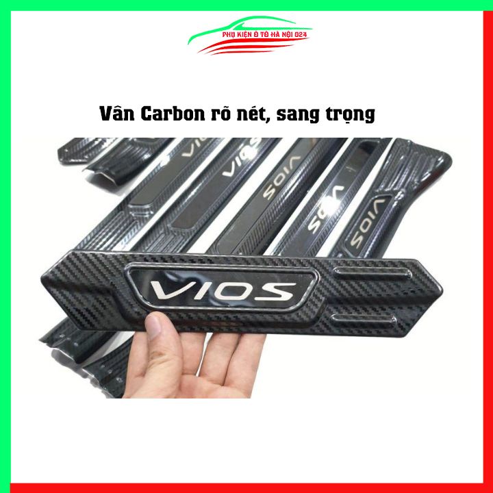 Giới thiệu Ốp bậc cửa, nẹp bước chân Vios 2019-2020 vân cacbon chống trầy bảo vệ trang trí xe
