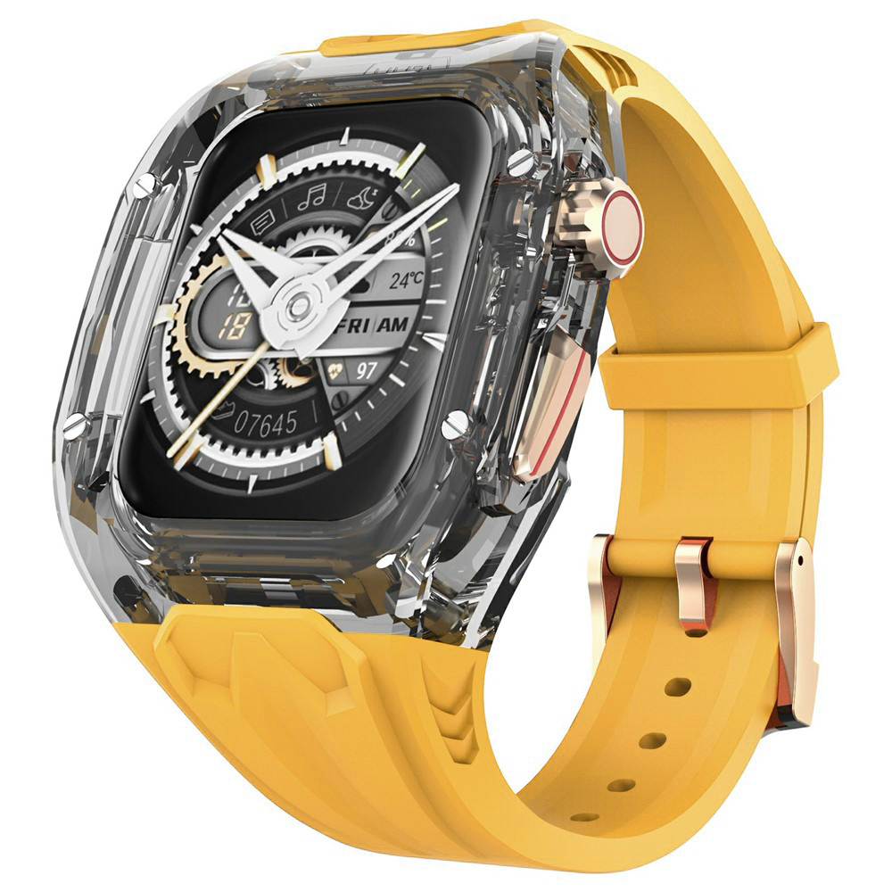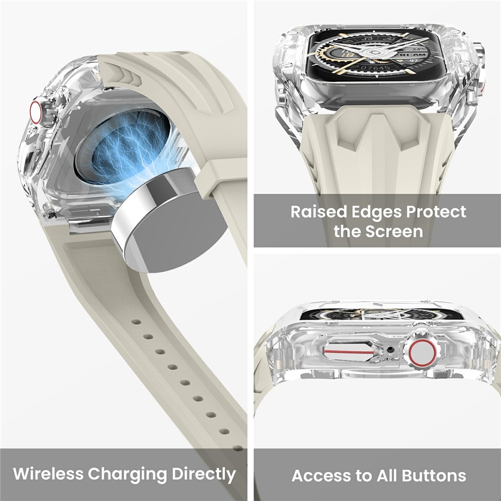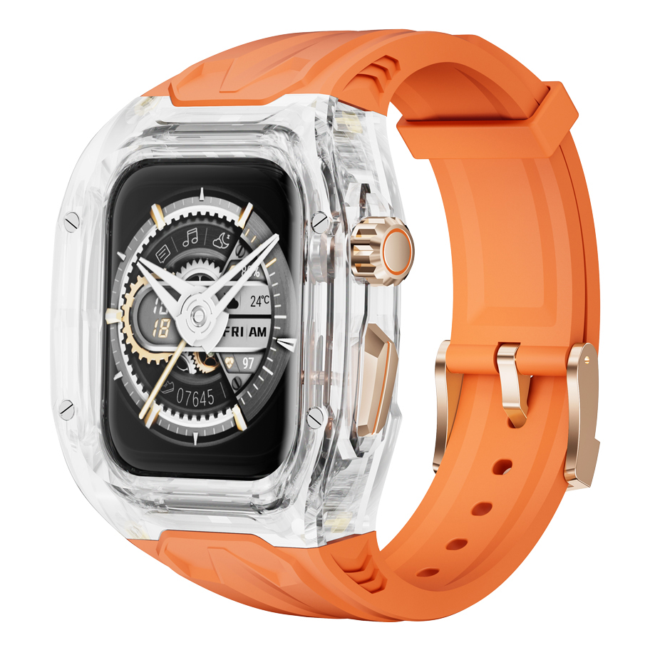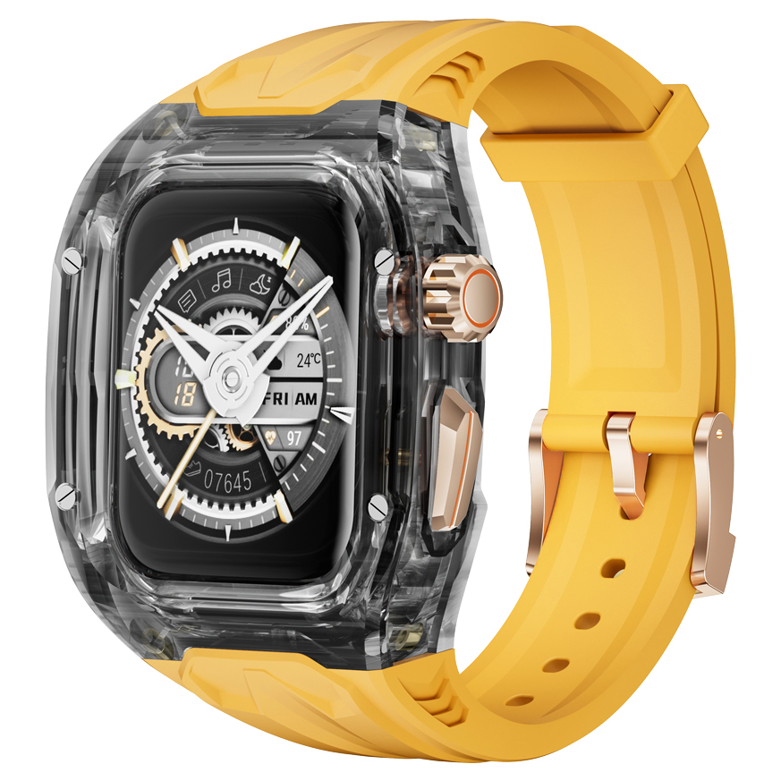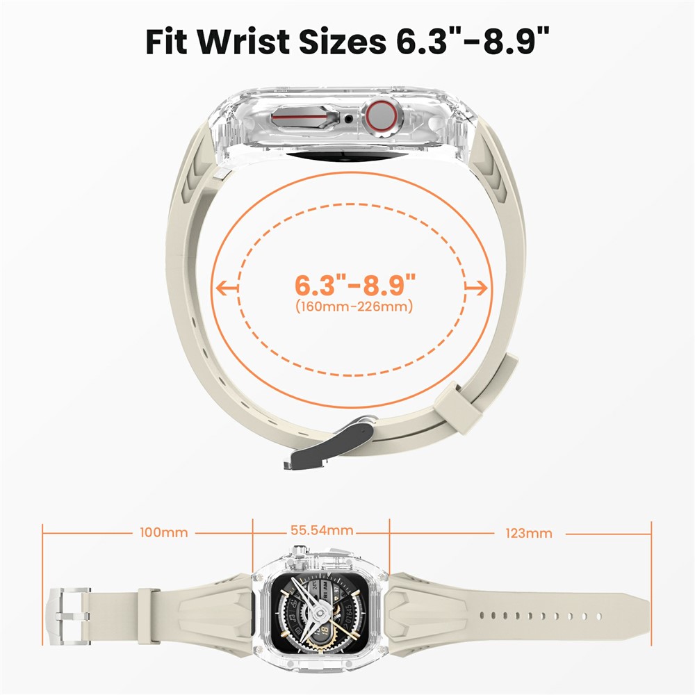 Thiết kế: Bộ ốp dây ôm trọn thân đồng hồ, mang lại khả năng bảo vệ toàn diện. Lớp vỏ bên ngoài trong suốt, cứng cáp, làm nổi bật thiết kế ban đầu của đồng hồ trong khi vẫn chống sốc và chống trầy xước hiệu quả.