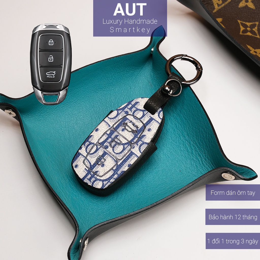 Ốp da chìa khóa ô tô Hyundai Santafe Kona Accent 3 nút bấm Dior handmade móc Apple D hiện đại
