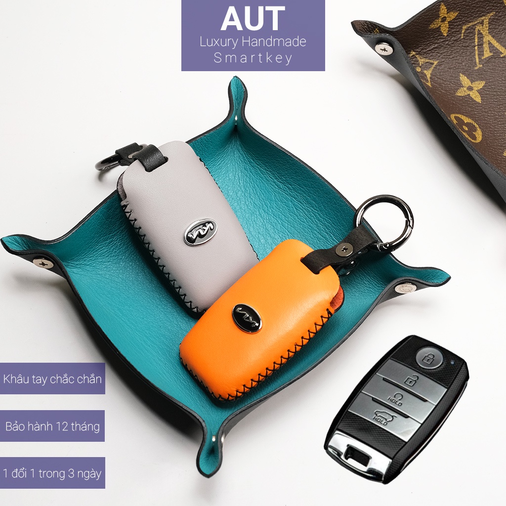 Ốp da chìa khóa ô tô Kia Seltos Sonet 4 nút bấm da bò khâu tay KMK4 AD