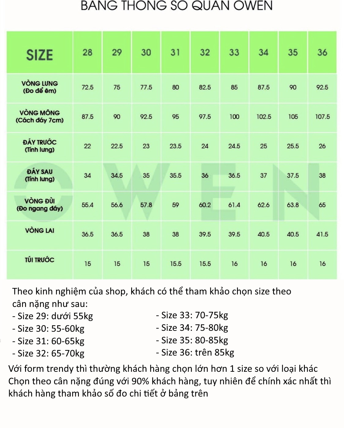 Bảng size trong thông tin mô tả sản phẩm chỉ mang tính chất tham khảo, khách cần tư vấn thêm vui lòng inbox cho shop.