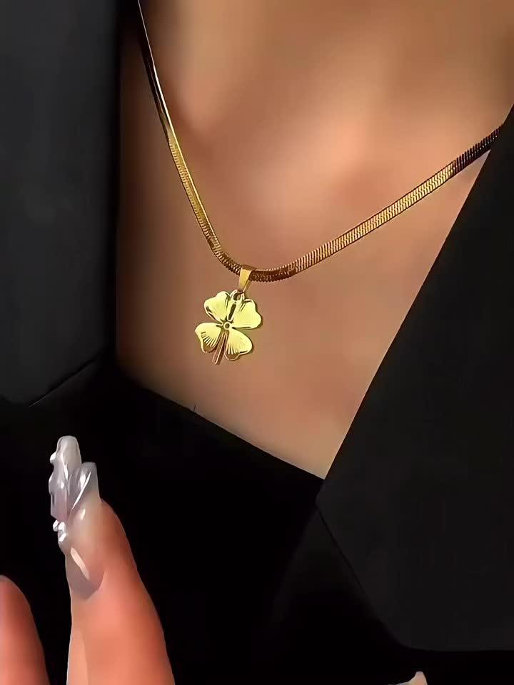 Trung tâm của vòng cổ treo một mặt dây chuyền cỏ bốn lá tuyệt đẹp, cỏ bốn lá là biểu tượng của may mắn, hy vọng, tình yêu và niềm tin. Người ta tin rằng việc tìm thấy một mảnh cỏ bốn lá sẽ mang lại may mắn và may mắn. Mặt dây chuyền này không chỉ là một vật trang trí đẹp mà còn có ý nghĩa sâu sắc đối với người đeo.