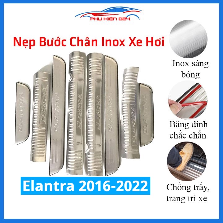 Giới thiệu Bộ ốp bậc cửa trong ngoài nẹp bước chân Elantra 2016-2017-2018-2019-2020-2021-2022 Inox chống trầy trang trí xe