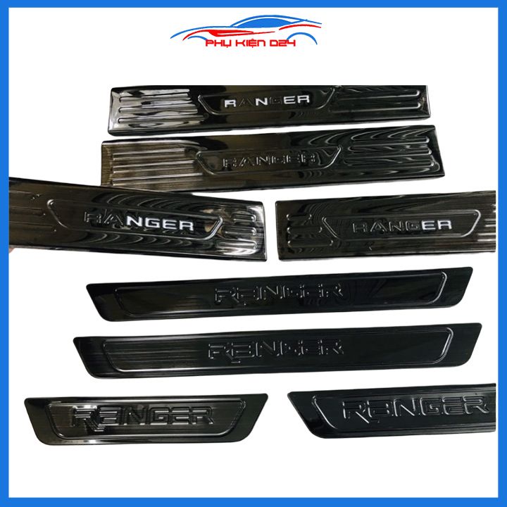 Giới thiệu Bộ ốp bậc cửa trong ngoài nẹp bước chân Ranger 2016-2017-2018-2019 vân Titan chống trầy trang trí xe