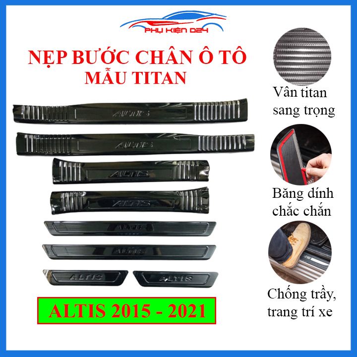 Giới thiệu Bộ ốp bậc cửa trong ngoài nẹp bước chân Altis 2014-2015-2016-2017-2018-2019-2020-2021 vân Titan chống trầy trang trí xe