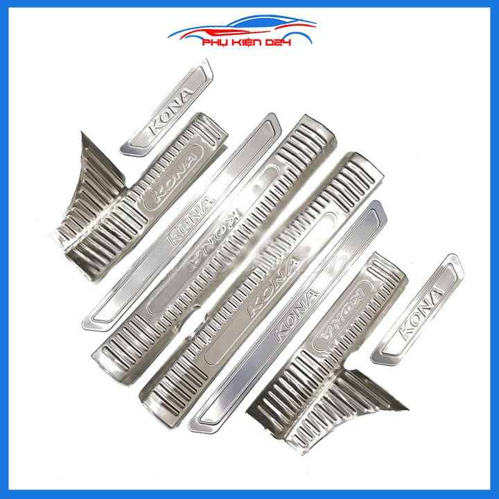 Giới thiệu Bộ ốp bậc cửa trong ngoài nẹp bước chân Kona 2018-2019-2020-2021-2022 Inox chống trầy trang trí xe