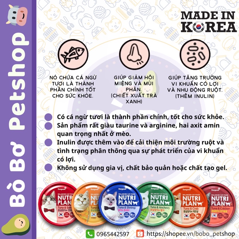 THỨC ĂN PATE CHO MÈO NUTRI PLAN - PATE CÂN BẰNG DINH DƯỠNG NHẬP KHẨU HÀN QUỐC * Phù hợp cho mèo từ 6 tháng tuổi ➖➖➖➖➖➖➖➖➖➖ 🧡 PATE NUTRI PLAN - CÂN BẰNG DINH DƯỠNG