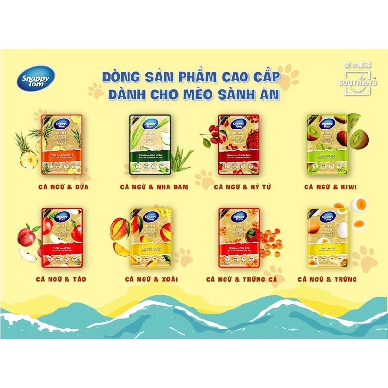 Bạn đã bao giờ có ý tưởng mèo sẽ ăn 🍎🥝🍍 chưa? Nếu chưa thì hãy cùng #SnappyTom khám phá dòng sản phẩm cao cấp #GourmerSeries nhé.