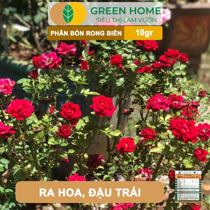 Phân bón lá rong biển Seaweed thúc đẩy ra hoa, chống rụng hoa, rụng trái tăng đề kháng cho hoa hồng và các loại cây