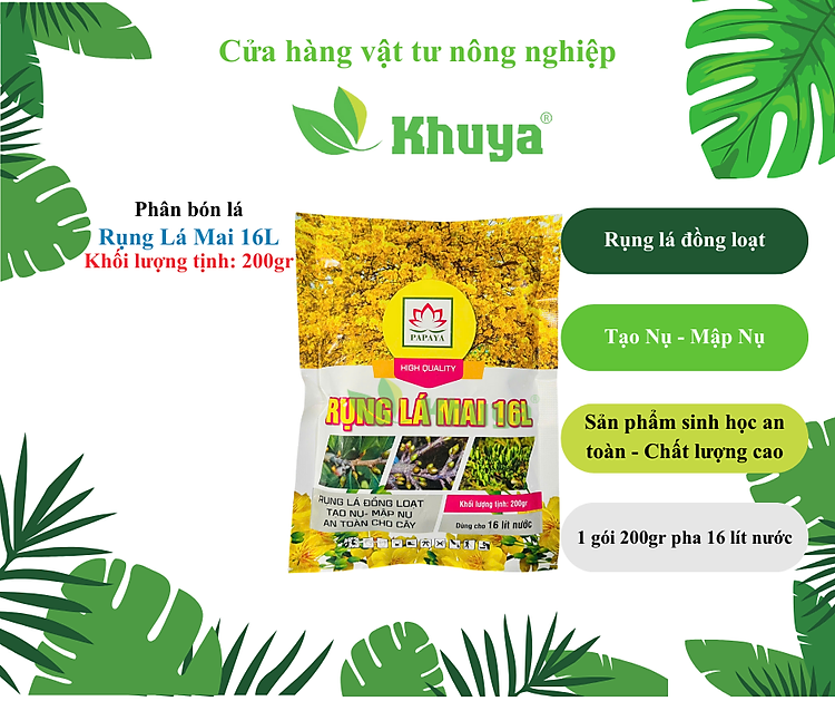 Phân bón lá Rụng Lá Mai 16L 200gr