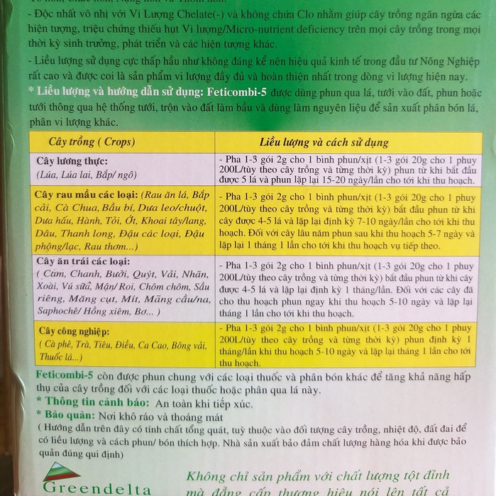Giới thiệu Phân Bón Lá Vi Lượng Thái Lan FETICOMBI-5 Vi Lượng Fetrilon Combi (2g)