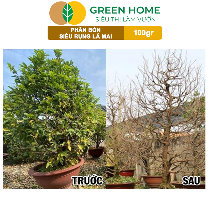 Phân Bón Siêu Rụng Lá Mai GreenHome, Gói 100gr, Giúp Cây Rụng Lá Nhanh, Chuẩn Bị Ra Nụ Đồng Loạt
