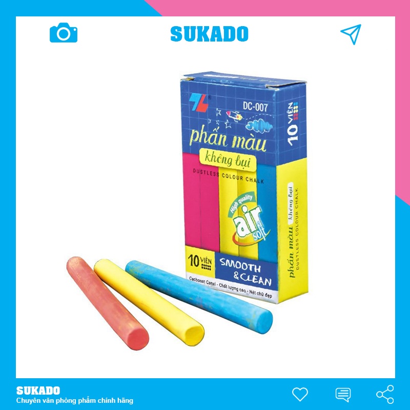 Phấn viết bảng không bụi Phấn trắng - phấn màu 10 viên Thiên Long DC07 SUKADO