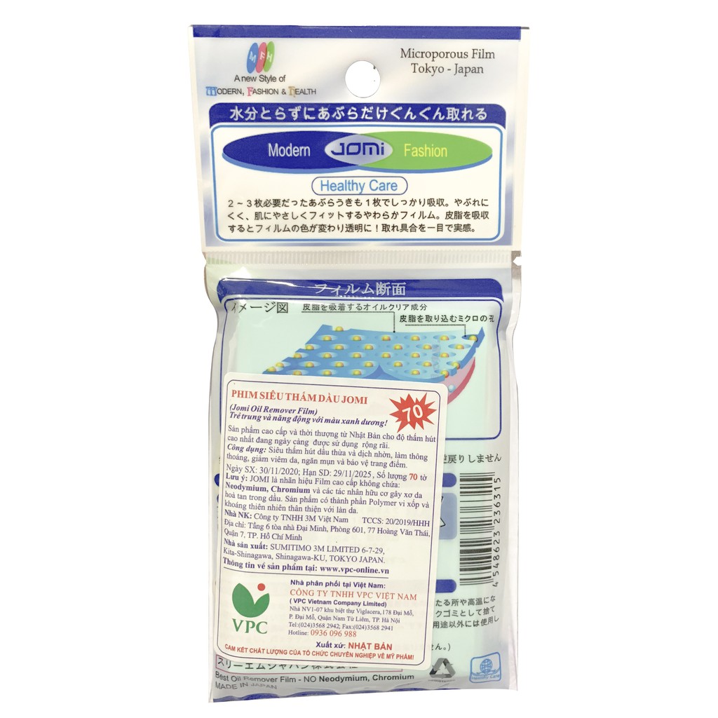 - Jomi Oil Clear Film có khả năng siêu thấm hút dầu thừa trên da mặt, giúp loại đi nét bóng nhờn, làm thông thoáng bề mặt da, giảm thiểu sự phát triển của mụn và bảo vệ trang điểm, Phim thấm dầu Jomi được coi là phụ kiện chăm sóc da, người bạn đồng hành, mọi lúc, mọi nơi không những của chị em mà với cả cánh mày râu nữa. Theo thống kê, có đến 80% phụ nữ văn phòng, nghệ sỹ biểu diễn, hay giới teen tại Nhật Bản và Hàn Quốc luôn mang theo Phim thấm dầu Jomi bên mình.