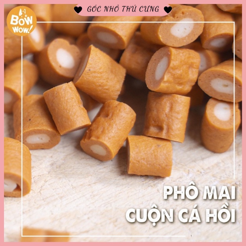 - Sản phẩm bổ sung chất xơ từ đậu nành giúp các cơ quan của chó hoạt động nhịp nhàng. Đặc biệt phô mai là loại thực phẩm thiết yếu nên bổ sung cho chó mẹ đang thời kỳ cho con bú. Cá hồi chứa giàu vitamin A, omega-3, canxi, phốt pho, sắt... - Phương pháp chế biến vệ sinh, an toàn, hương vị thơm ngon, lượng muối thấp - Được chế biến theo dây chuyền sản xuất khép kín của Bowwow, đáp ứng các quy định về vệ sinh an toàn thực phẩm, từ những nguyên liệu hoàn toàn tự nhiên giàu dinh dưỡng. - Hàm lượng chất béo, muối và calo thấp trong khi chất lượng protein cao, phomai cuộn cá hồi và phomai cuộn thịt gà Bowwow tốt cho hệ tiêu hóa và hấp thụ dưỡng chất. Cá giàu chất đạm chất lượng cao và ít chất béo, dễ tiêu hóa. Sản phẩm giúp phòng bệnh béo phì, tim mạch và đường ruột hiệu quả.