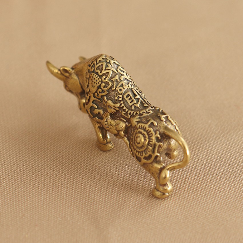 Phụ Kiện Thời Trang > Phụ kiện thêm > Mặt dây chuyền và Charm || ️️️Phong Thủy - Móc Khóa - Mặt Dây Chuyền Bằng Đồng Thau Nguyên Chất - Bò Kim Ngưu (Kích Thước 4.3 cm x 2 cm)