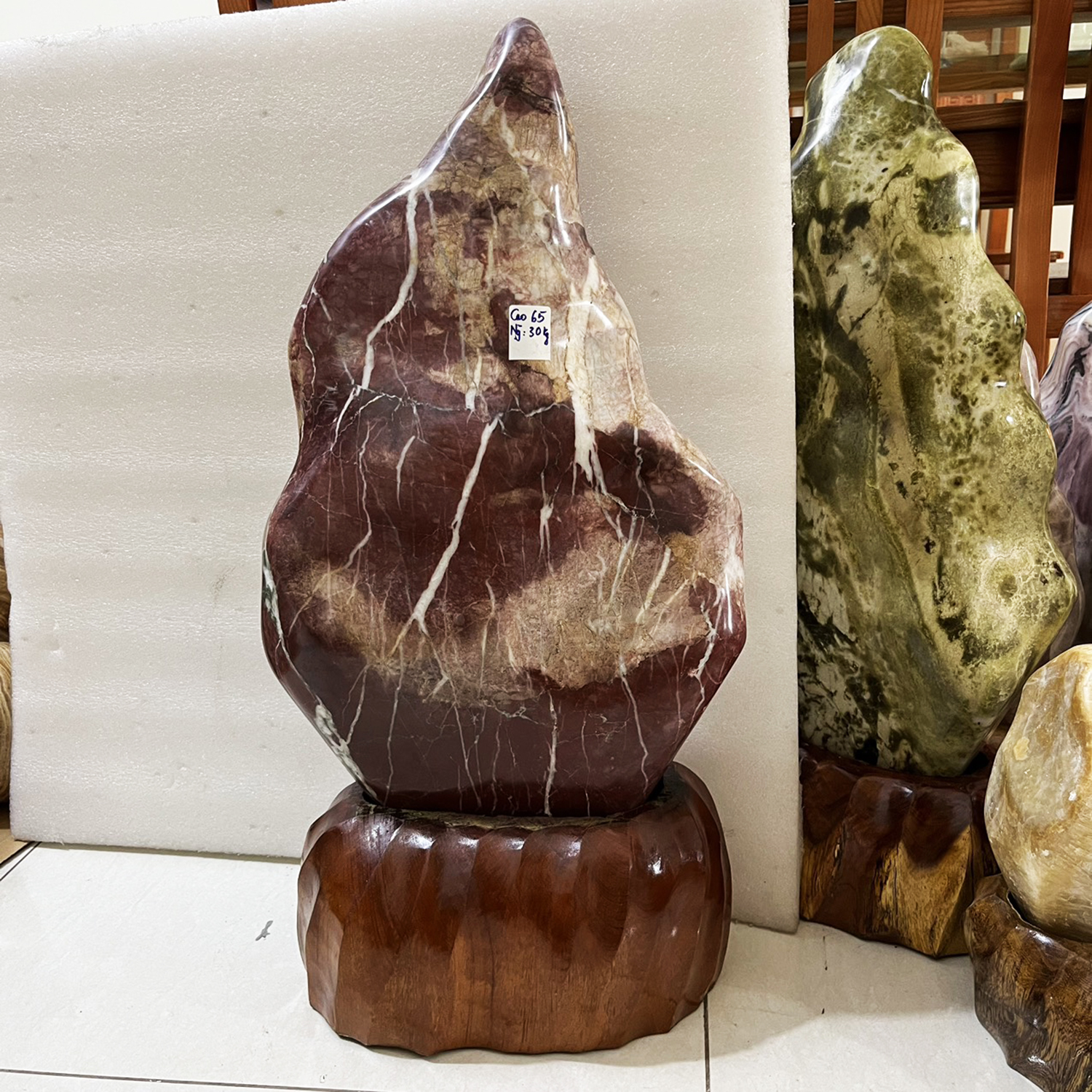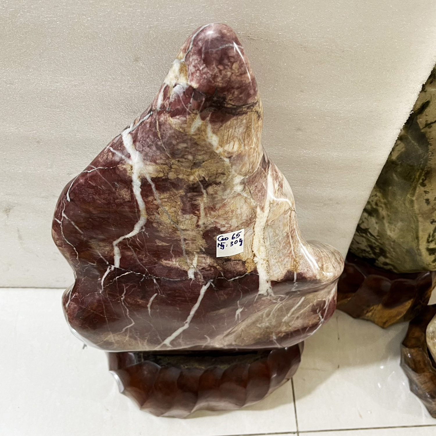 ĐÁ PHONG THỦY TỰ NHIÊN MÀU ĐỎ HỒNG CAO 65 CM , NẶNG 30 KG ( CẢ CHÂN ĐẾ) CHO MỆNH THỔ VÀ HỎA