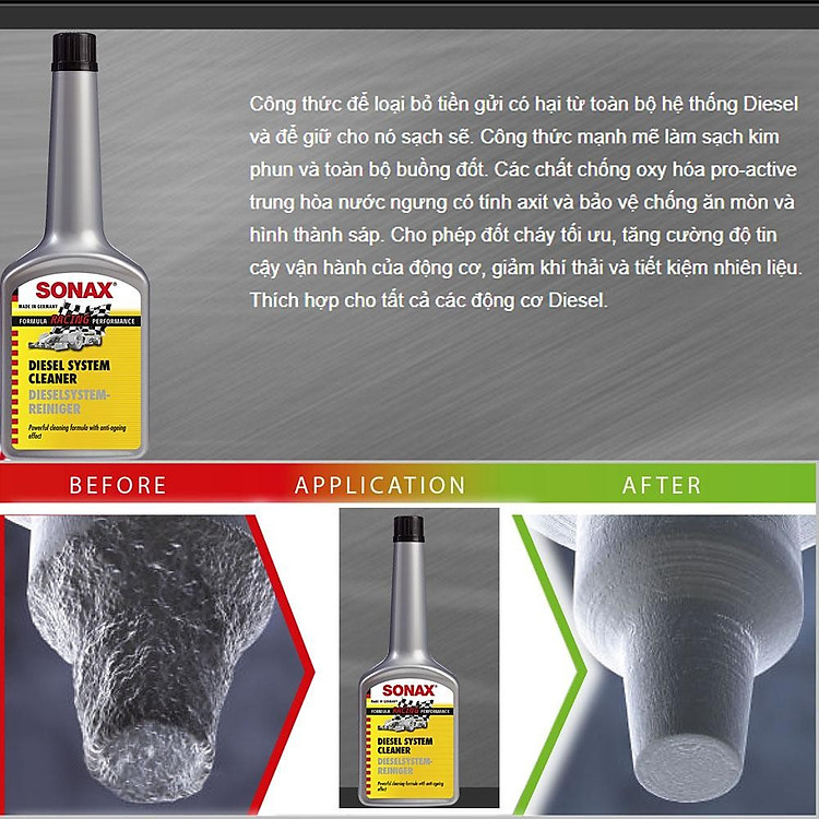 Phụ gia vệ sinh hệ thống dầu diesel toàn diện Sonax 518100 250ml thuộc thương hiệu Sonax, Sản phẩm được sản xuất tại Đức
