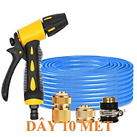 Bộ dây vòi xịt nước rửa xe, tưới cây . tăng áp 3 lần, loại 7m, 10m 206318 đầu đồng,đai,nối vàng+tặng móc khoá