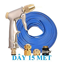 Bộ dây vòi xịt nước rửa xe, tưới cây . tăng áp 3 lần, loại 15m 206318 đầu đồng,cút,+ tặng đai