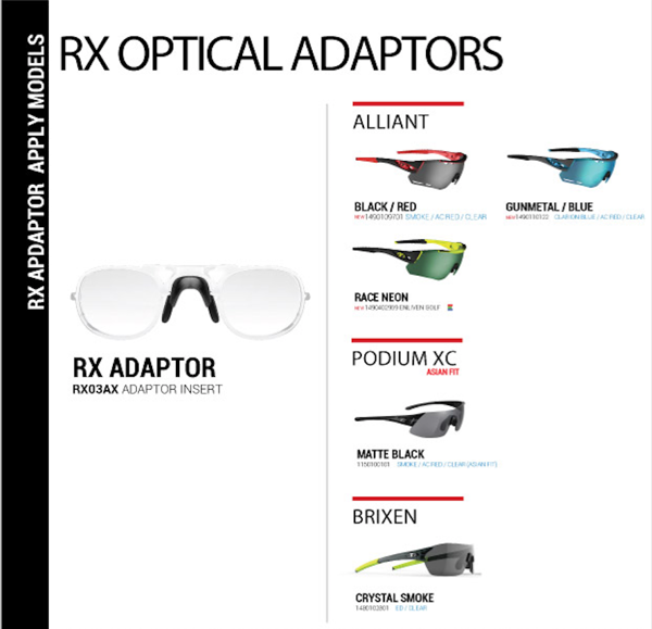 Phụ kiện gắn tròng kính thuốc RX03AX được thiết kế cho các mẫu kính mát thể thao như Alliant, Podium XC và Brixen. Phụ kiện giúp bạn gắn các loại tròng kính cận, viễn, loạn và lão theo đơn bác sĩ tại các tiệm kính.