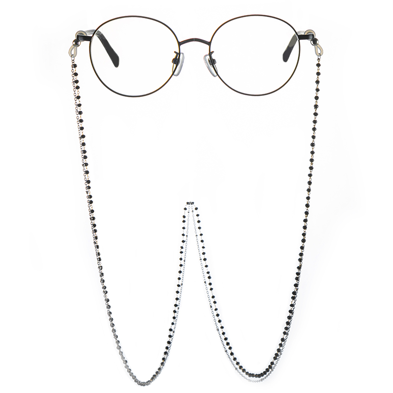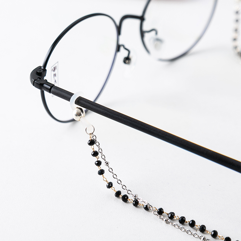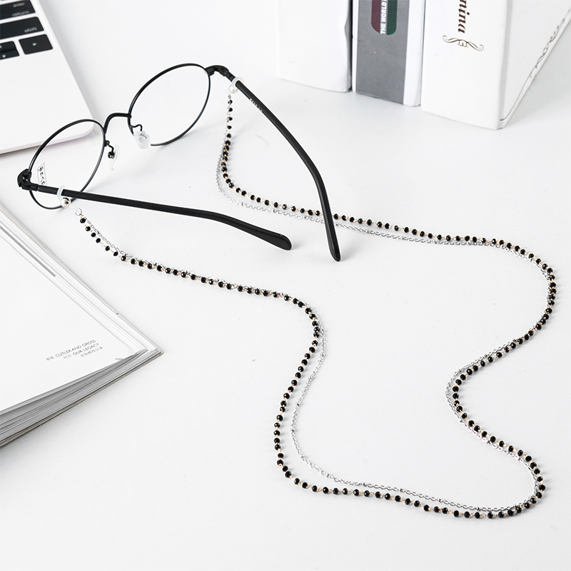 Phụ kiện kính chuỗi dây đeo cổ 2 lớp hạt đen retro thời trang