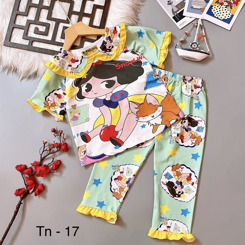 Giới thiệu Đồ bộ pijama bé gái áo cộc quần dài thun lạnh 3D co giãn 4 chiều mềm mát mặc nhà mặc ngủ 22-42kg