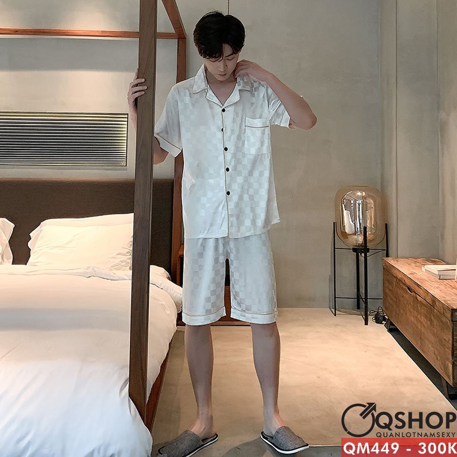 Bộ đồ pijama nam quần ngắn, tay ngắn QM449 Chất liệu: Lụa Satin