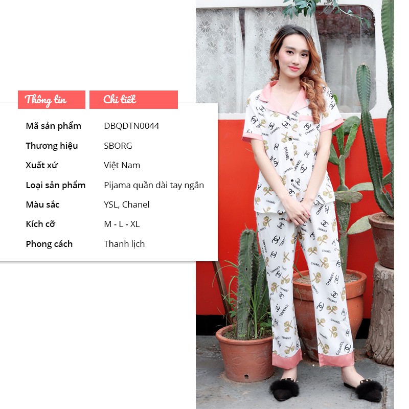Giới thiệu Pijama nữ SBORG đồ bộ mặc nhà lụa hàn họa tiết trendy tay ngắn quần dài có túi 45-65kg quà tặng vợ gu mac