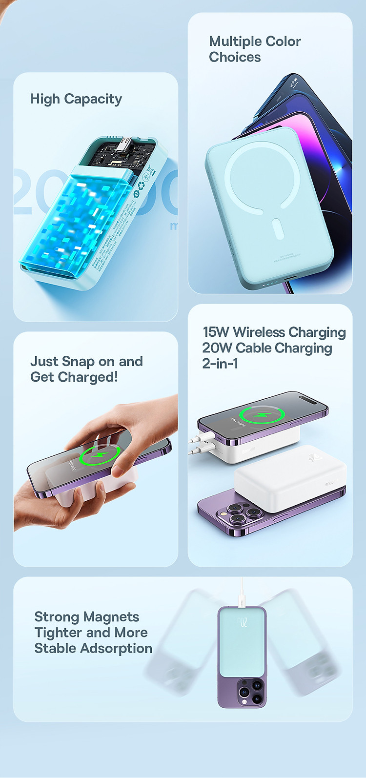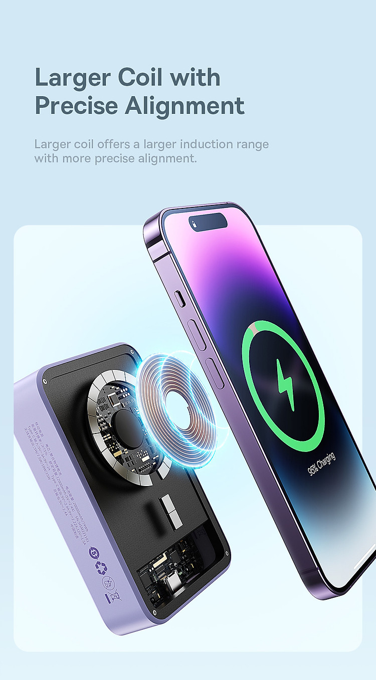 Đặc biệt, sản phẩm được tích hợp nam châm mạnh mẽ, giúp thiết bị được gắn chặt vào sản phẩm khi sạc không dây, giúp giữ cho thiết bị của người dùng được an toàn và không bị lỏng khi di chuyển.