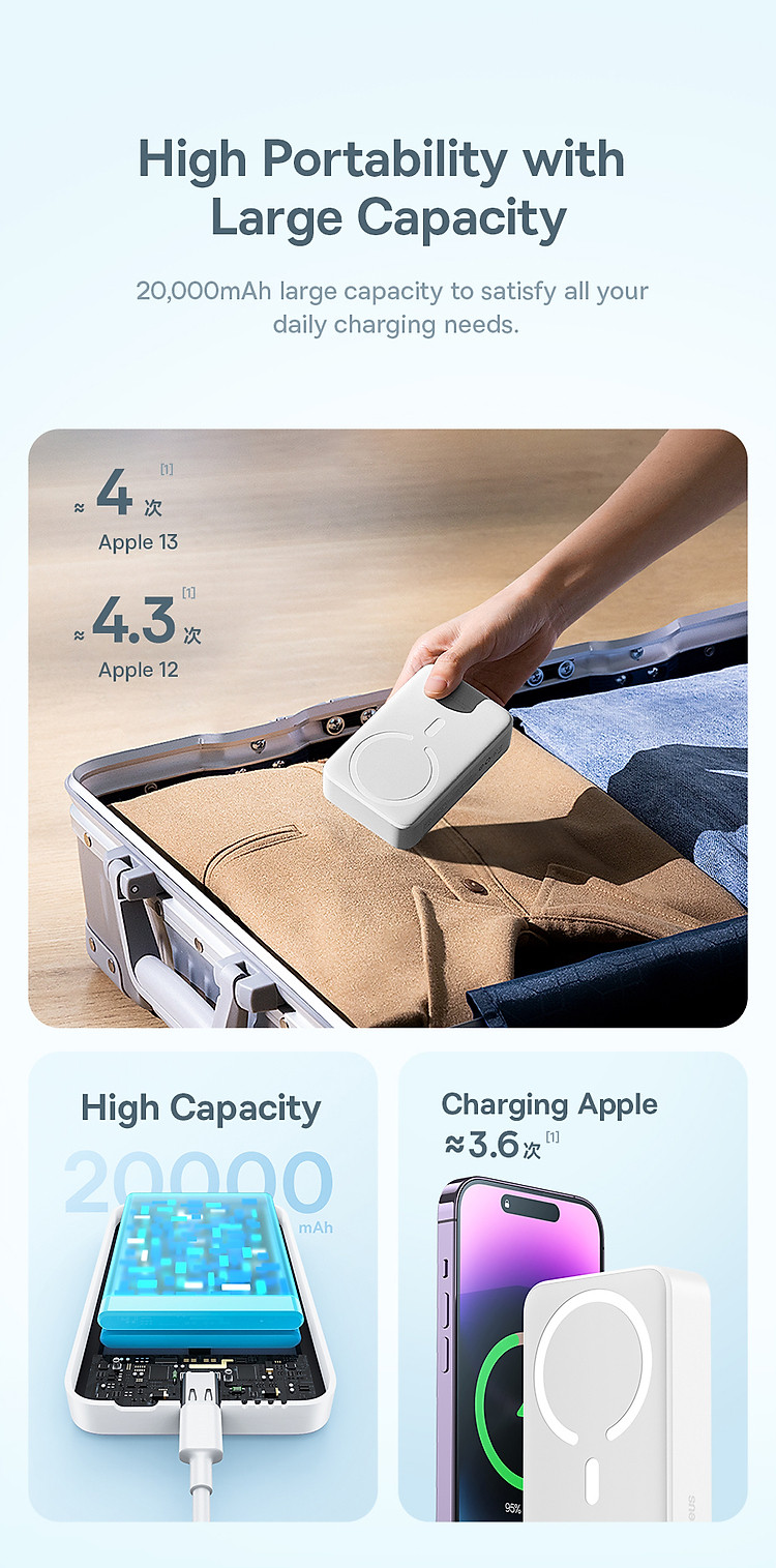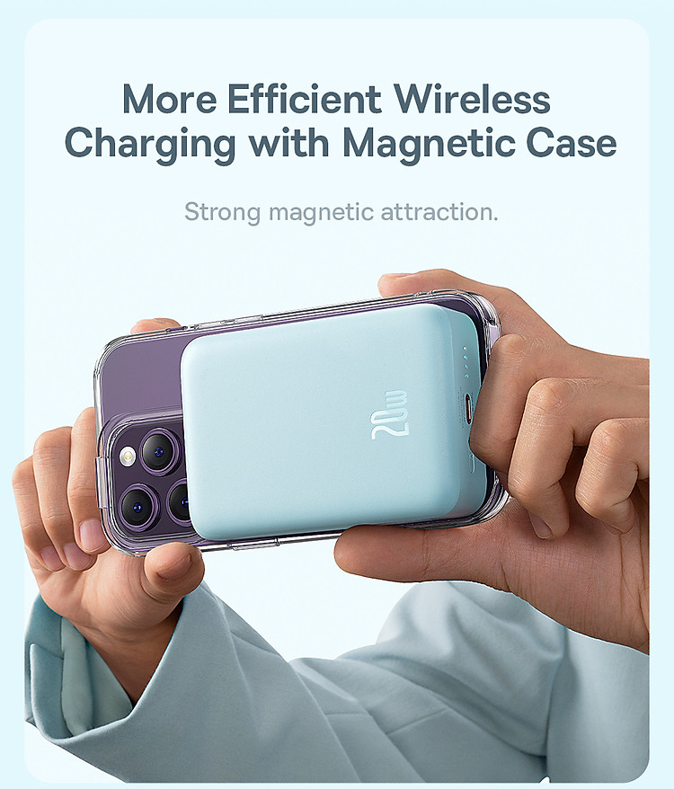 Pin Dự Phòng Không Dây Tích Hợp Nam Châm OS-Baseus Magnetic Mini Wireless Fast Charge Power Bank là một sản phẩm sạc dự phòng tiên tiến của thương hiệu Baseus. Với dung lượng lên đến 20000mAh, sản phẩm này có thể sạc lại nhiều lần cho các thiết bị của bạn.