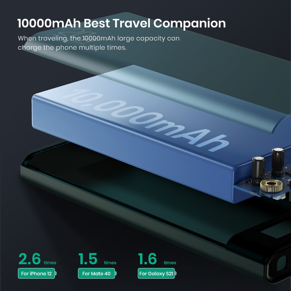 Đặc trưng: ☀ Sạc nhanh 18W, 20W PD3.0 + QC 3.0: Cổng USB-C phân phối nhanh hai chiều, hỗ trợ cung cấp năng lượng lên đến 18W ở đầu vào và đầu ra. Đầu ra QC 3.0 hỗ trợ 5V/3A, 9V/2A, 12V/1.5A. Bạn có thể sạc 2 điện thoại cùng một lúc, pin sẽ sạc nhanh cho các thiết bị của bạn khi sử dụng tất cả 2 đầu ra cùng nhau (Tối đa 36W). ☀ Kích thước nhỏ dung lượng lớn: Pin sạc dự phòng DP 10000mAh 18W - 20W có thể sạc cho iPhone 8 3.5 lần, iPhone XS 2.7 lần, Xiaomi Mi 9 2.2 lần. Thích hợp cho công việc, du lịch, đi chơi, bạn không phải lo lắng về việc điện thoại bị hết pin. ☀ Vỏ bằng hợp kim nhôm với màn hình LED: Thiết kế chống trượt và chống vân tay với màn hình LED để hiển thị dung lượng pin còn lại. Màn hình sẽ hiển thị "PD" khi sạc nhanh thiết bị của bạn. Khi lượng pin của iPhone bạn được sạc lên tới 80%, pin sạc dự phòng sẽ sạc iPhone của bạn ở tốc độ thường nhờ hệ thống an toàn IOS. ☀ Bảo vệ an toàn: Các biện pháp bảo vệ tích hợp giúp bảo vệ các thiết bị của bạn khỏi cường độ điện quá mức, quá nhiệt và quá tải.