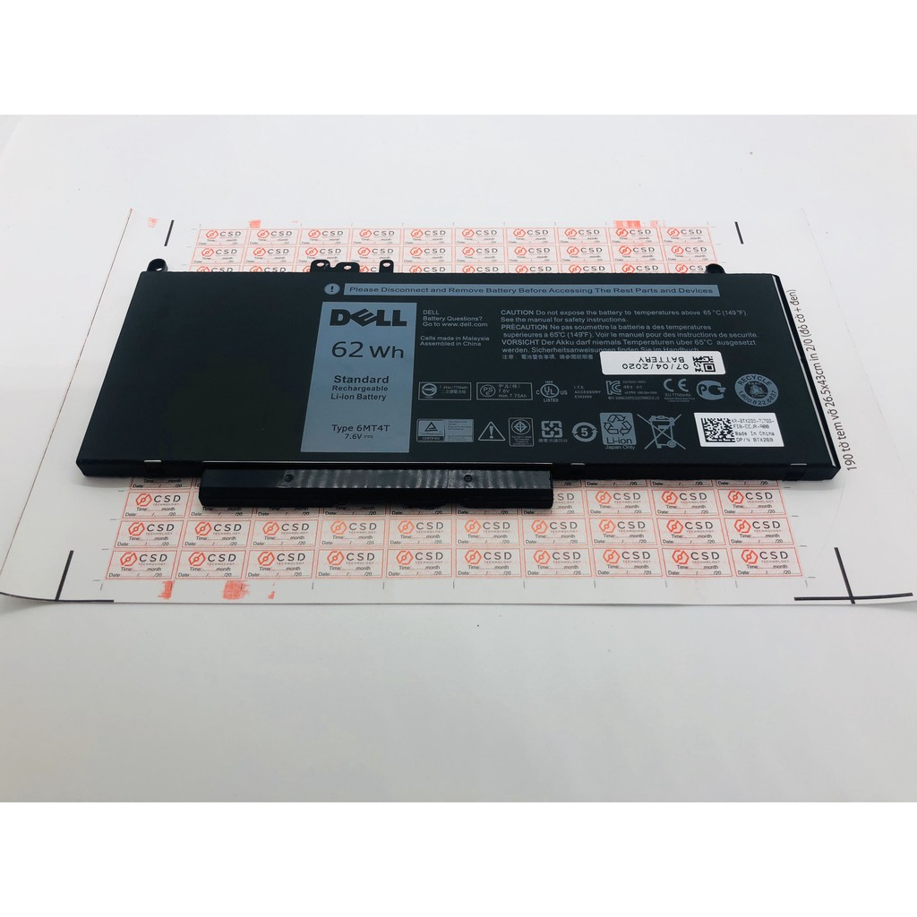 Pin Laptop Dell Latitude E5470 E5570 Series Dell Precision 3510 Mã Pin 6MT4T Hàng Zin Logo Dell-Hàng mới 100% Quí Khach Chú ý, : PHẢI ĐÚNG MÃ PIN thì LAptop mới nhận pin nhé, có trường hợp đúng chân cắm, đúng hình dáng, lắp vừa nhưng laptop sẽ ko sạc được pin ) Ví dụ như G5M10 và 6MT4T ) Thông số kĩ thuật : • Voltage: 7.6V • Capacity :62Wh/ 7750mAh • Cell type: Li-polymer • Model : 6MT4T • Màu Sắc : Màu đen • Tình trạng : Mới 100% • Bảo hành : 6 tháng