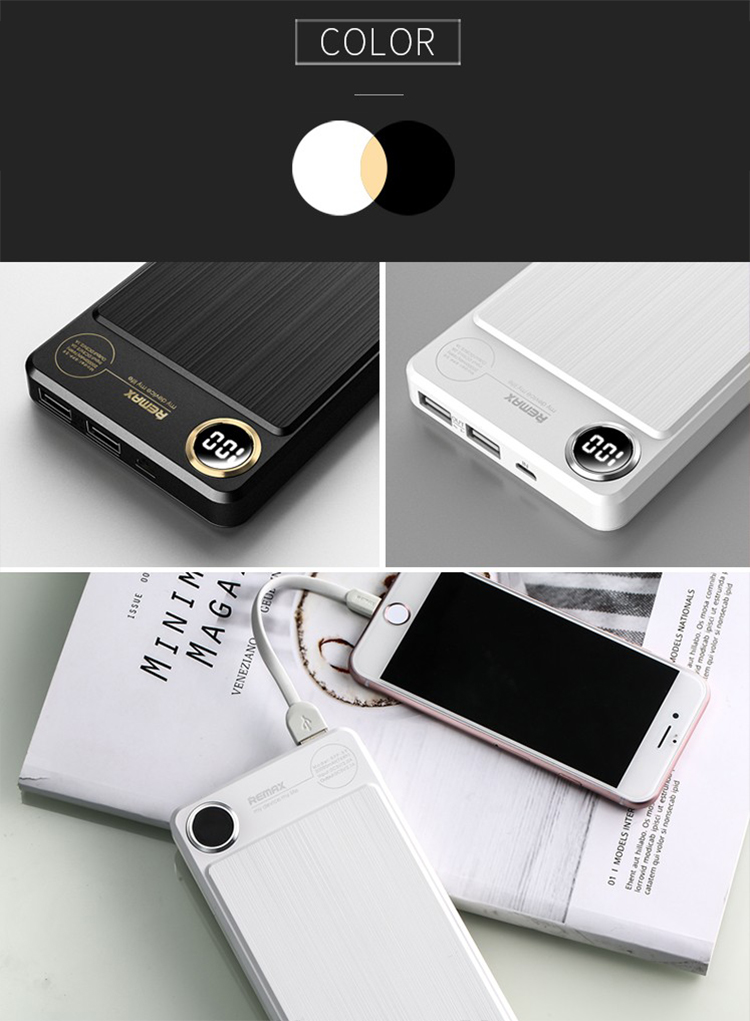 Pin Sạc Dự Phòng Remax 10000mAh RPP-87 có dung lượng pin là 10.000mAh cho bạn thoải mái nạp năng lượng cho dế yêu. Chỉ cần có một chiếc pin sạc dự phòng RPP-87 là bạn có thể tha hồ gọi điện, nhắn tin chơi game, lướt web cả ngày mà không lo lắng vấn đề pin yếu.