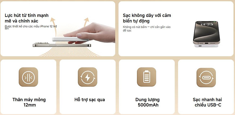 Có công suất đầu ra có dây tối đa là 18W và công suất đầu vào tối đa là 20W cho iPhone, cho phép sạc đầy trong khoảng 2,2 giờ