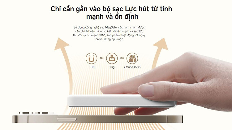 Gắn chặt vào iPhone mà không làm cản trở camera để sử dụng liên tục trong khi sạc.