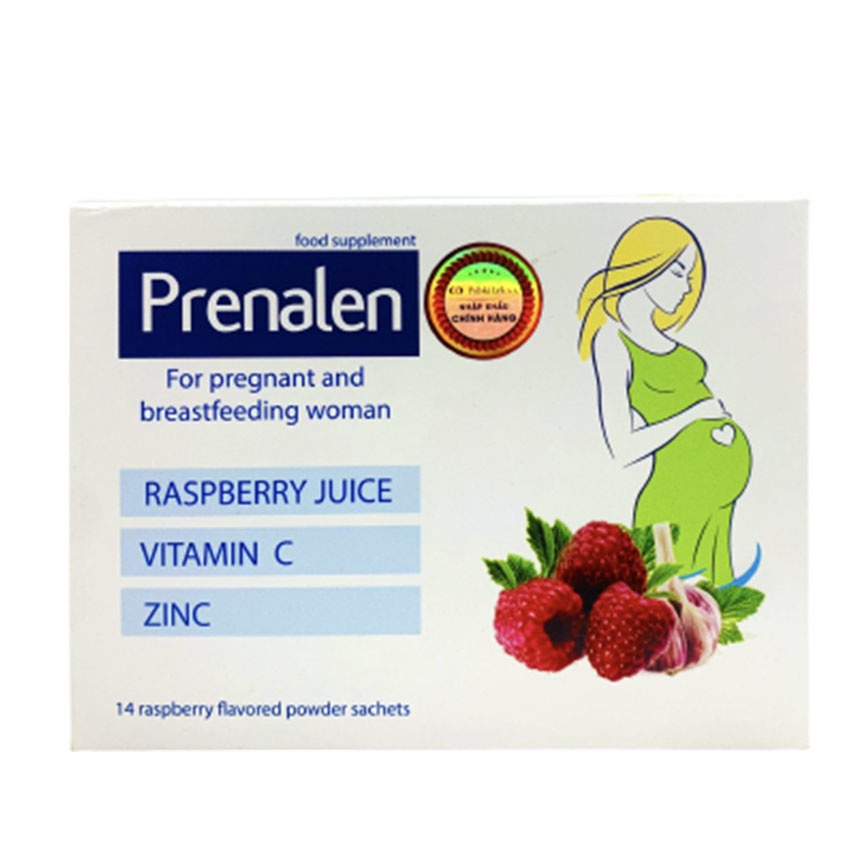 Quy Cách Prenalen: Hộp 14 gói Thành Phần Prenalen: Bột củ cải đường:………………………………………………280mg Nước ép quả mâm xôi dạng bột (cô đặc):……........………..220mg Chiết xuất tỏi khô (Allium sativum L.):……….......…………..150mg Chiết xuất trà đen:………..………………………………………80mg Vitamin C (L – ascorbic acid):…………......…………………….80mg Kẽm (Kẽm citrate):……………………………………....………..10mg Công Dụng Prenalen: Bổ sung các loại vitamin & khoáng chất Hỗ trợ tăng cường sức đề kháng Hỗ trợ ngăn ngừa & giảm các triệu chứng cảm cúm Nâng cao sức khỏe cho phụ nữ có thai & cho con bú