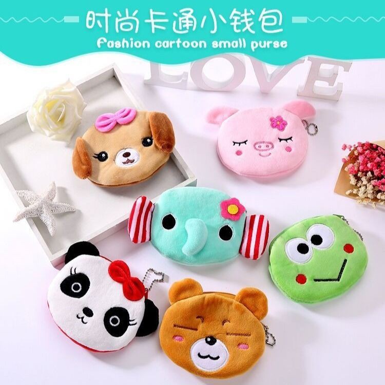 Giới thiệu PVN27915 Ví đựng tiền kiêm móc khóa bằng vải nhung hình động vật xinh xắn dành cho nữ T2