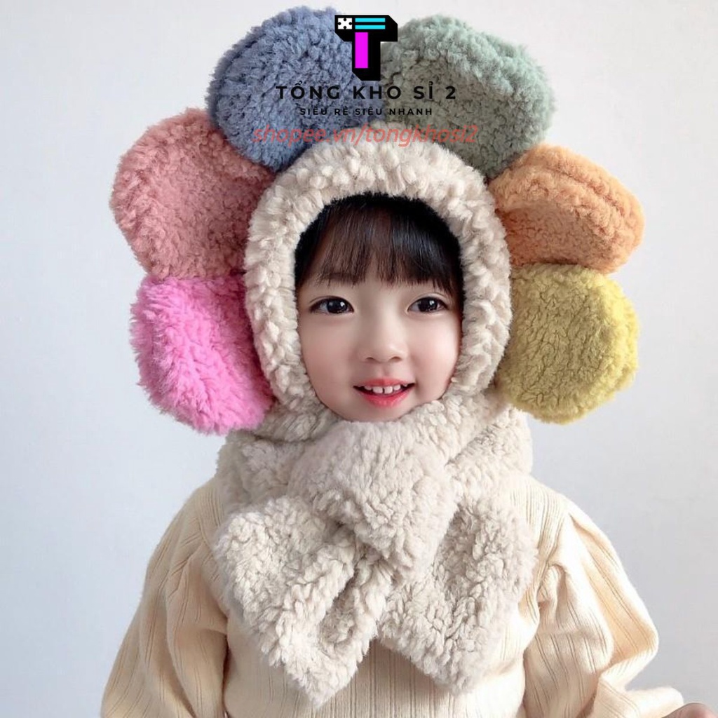 PVN38855 Mũ lông cừu kèm khăn cho bé hình hoa siêu dày dặn giữ ấm cho bé mùa thu đông hàng Quảng Châu T2