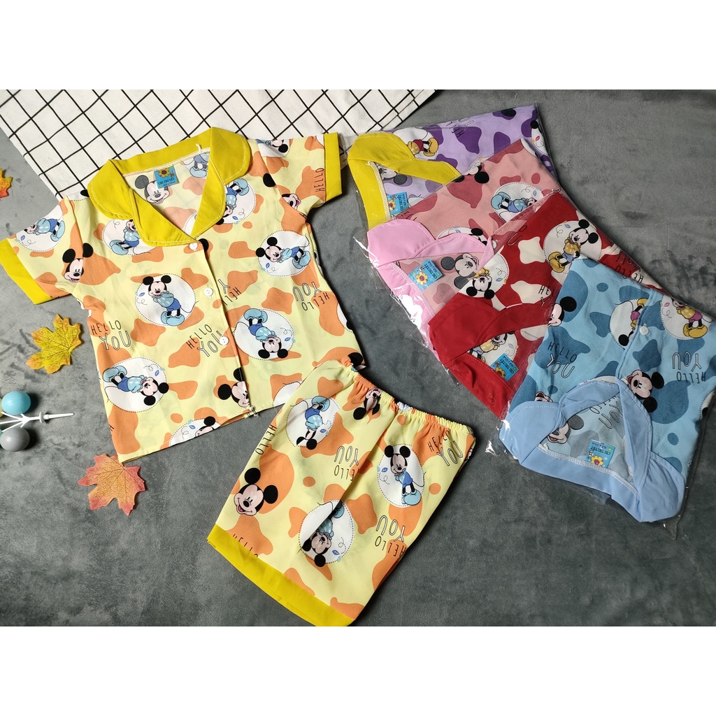 Thời trang trẻ em & trẻ sơ sinh > Quần áo bé trai > Đồ ngủ || Đồ bộ pyjama lụa tay ngắn bé (14-18kg) (giao màu ngẫu nhiên)
