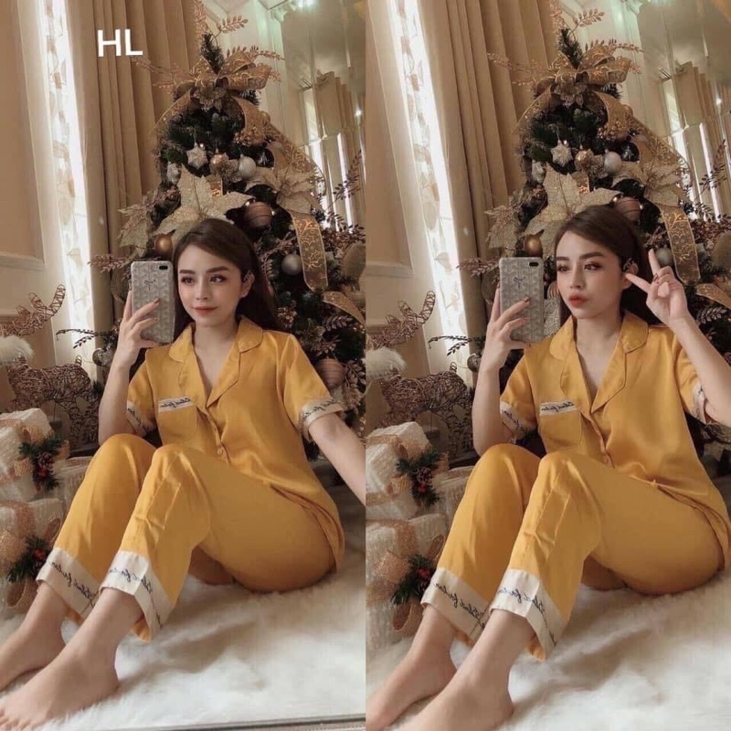 Thời Trang Nữ > Đồ ngủ > Pyjama || Pyjama Lụa Viền Chữ Kí Tay Ngắn