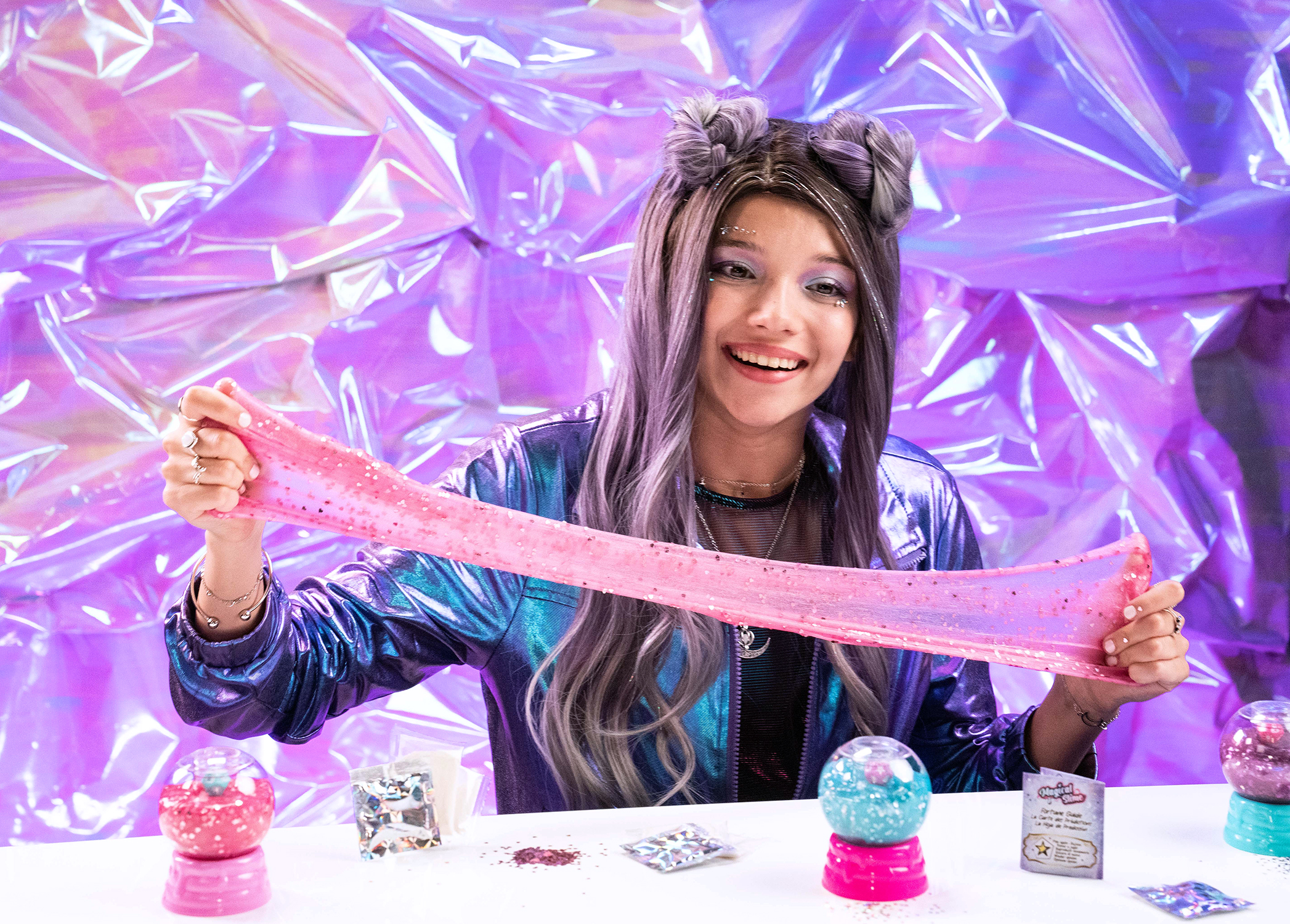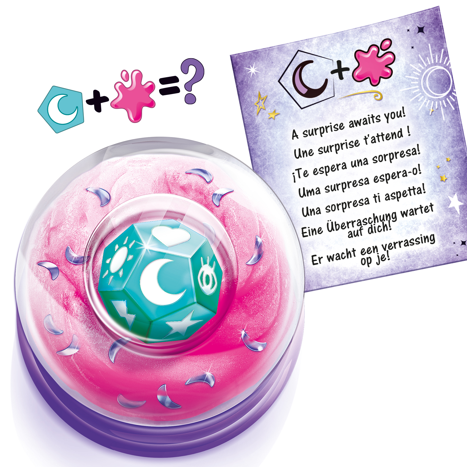 Chiếc bình ma thuật để tạo ra slime ma thuật của riêng bạn! Điều chế dung dịch slime và thuốc tiên ma thuật cực dễ dàng chỉ với các bước đơn giản. Trộn bột và các thành phần ma thuật theo thẻ công thức trong hộp, thêm nước, lắc đều, vậy là hoàn thành. Cùng xem màu sắc bạn tạo ra sẽ tiết lộ tương lai của mình như thế nào nhé.