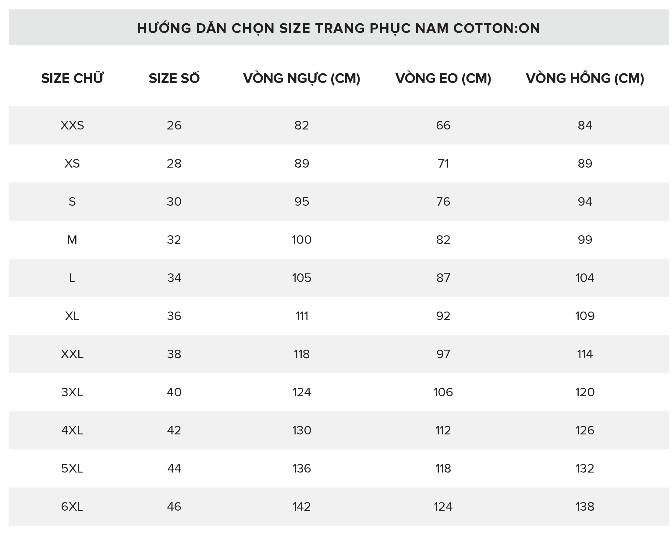 Lưu ý: Size có thể chênh lệch trên dưới 2cm tuỳ vào phom dáng sản phẩm.