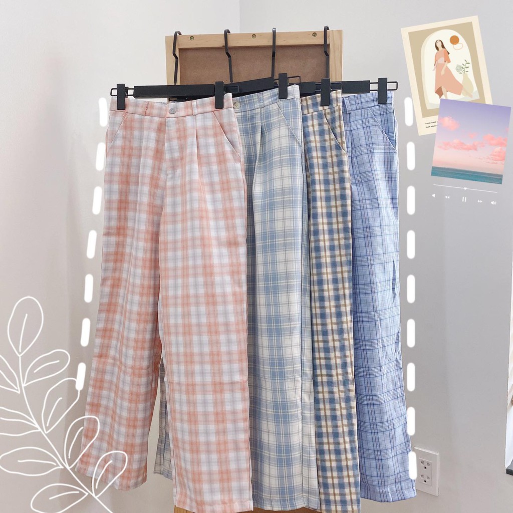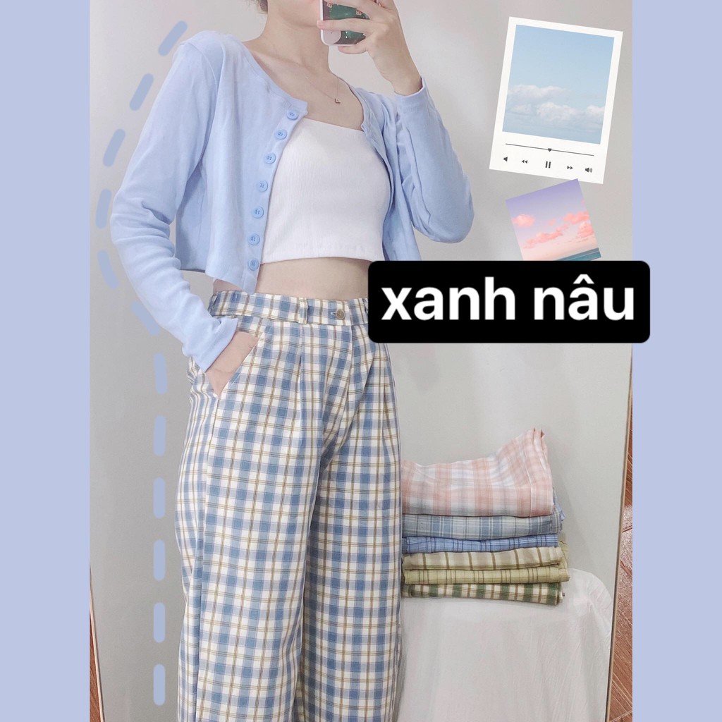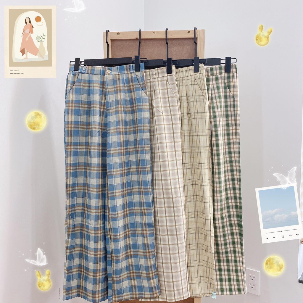 Thời Trang Nữ > Áo > Áo hai dây và ba lỗ || Quần Ống Rộng YAYSHOP dáng rộng cạp cao chất kate mềm mát - họa tiết caro dây kéo lưng thun (7 màu mới) hình thật