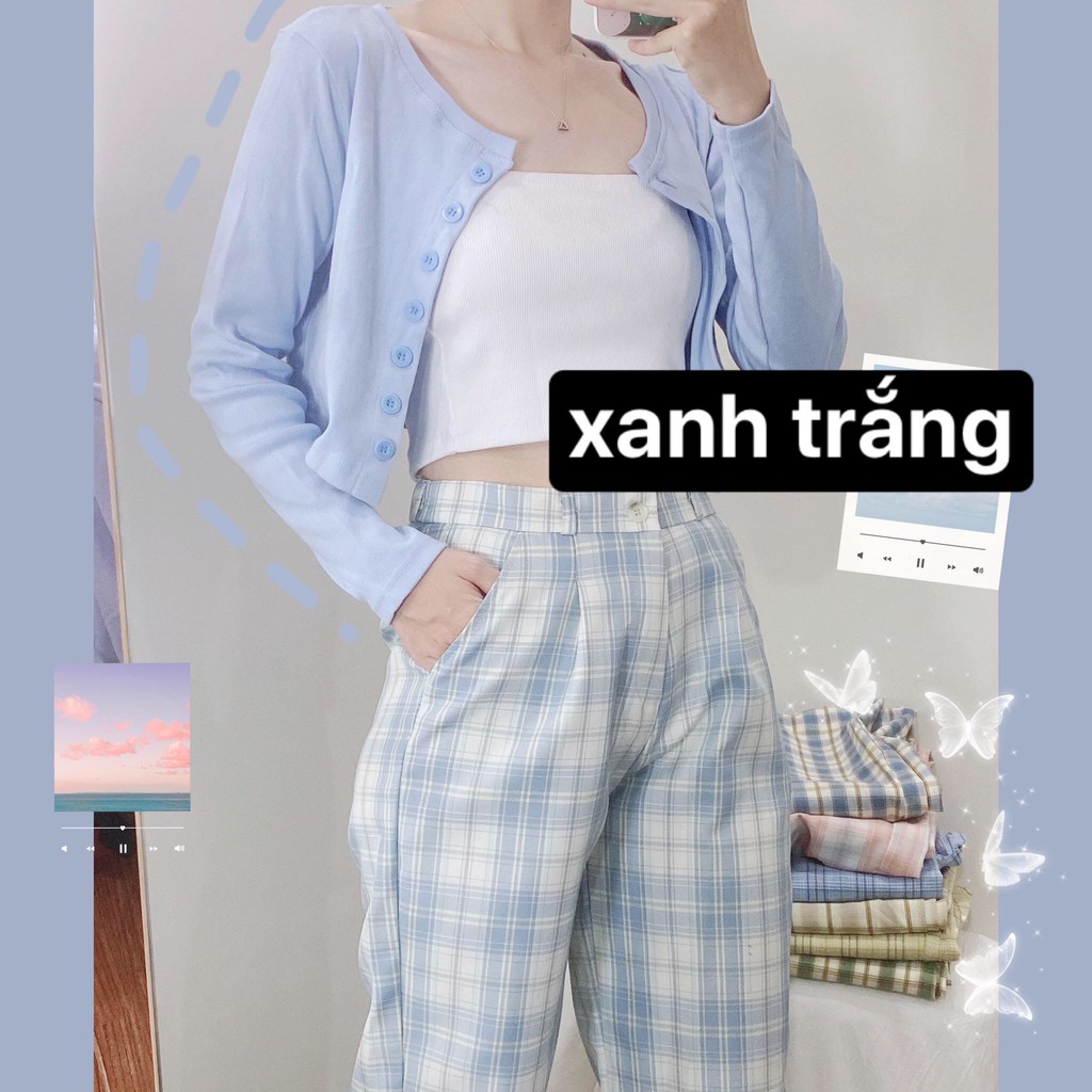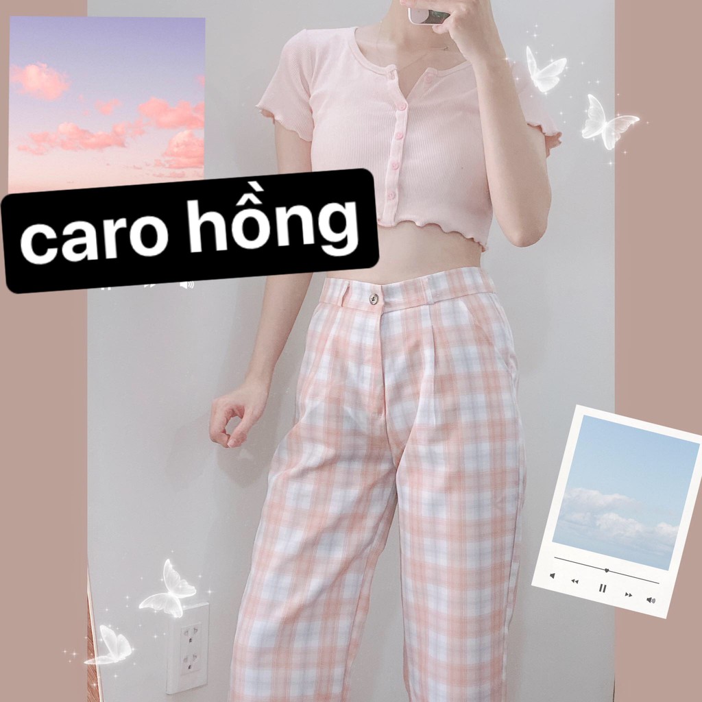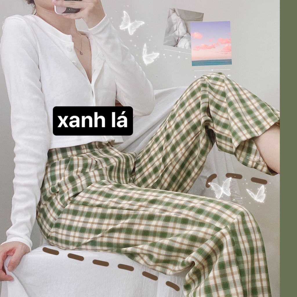 Thời Trang Nữ > Áo > Áo hai dây và ba lỗ || Quần Ống Rộng YAYSHOP dáng rộng cạp cao chất kate mềm mát - họa tiết caro dây kéo lưng thun (7 màu mới) hình thật