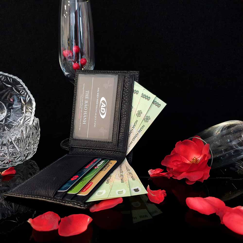 Kích thước bóp ví nam 11.5cm x 9.5 cm (dài x rộng) thoải mái cho việc để các giấy tờ tùy thân và thẻ ATM