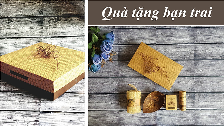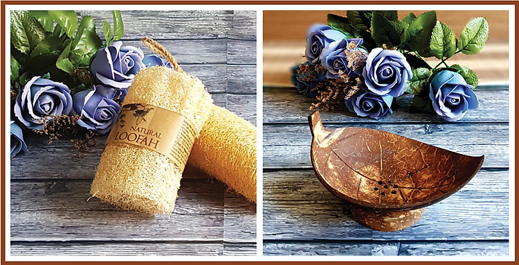 | Thành phần | Bông tắm xơ mướp, xà bông than, kệ đựng gáo dừa, tinh dầu sả chanh |