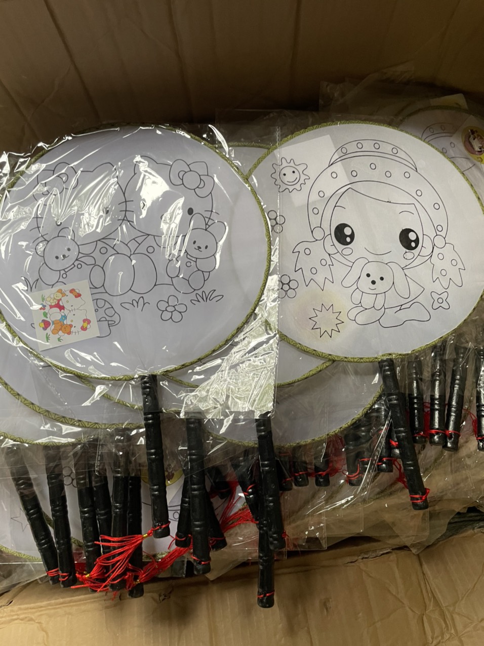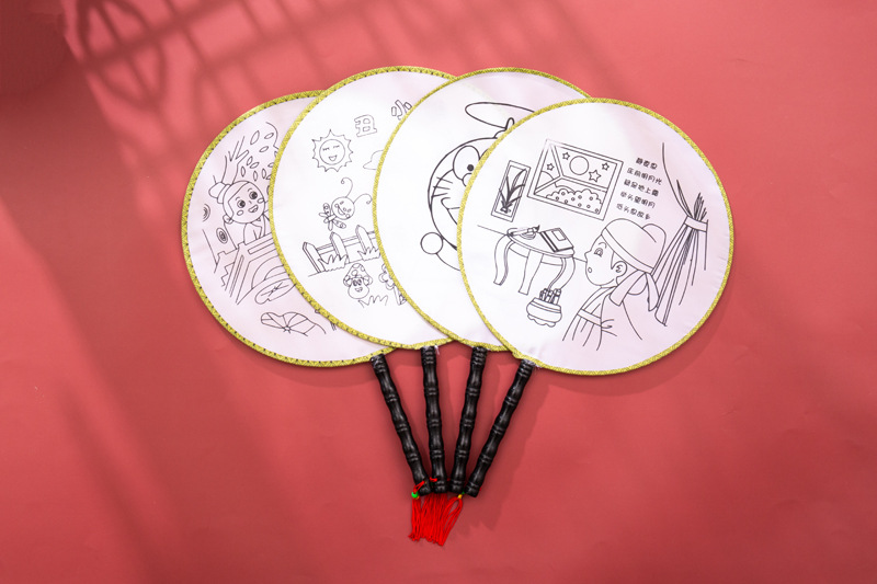 [Quà tặng] 10c Quạt vải lụa tròn tự tô có in hình 24 cm cho bé tô màu, quạt tròn tự trang trí nhiều mẫu