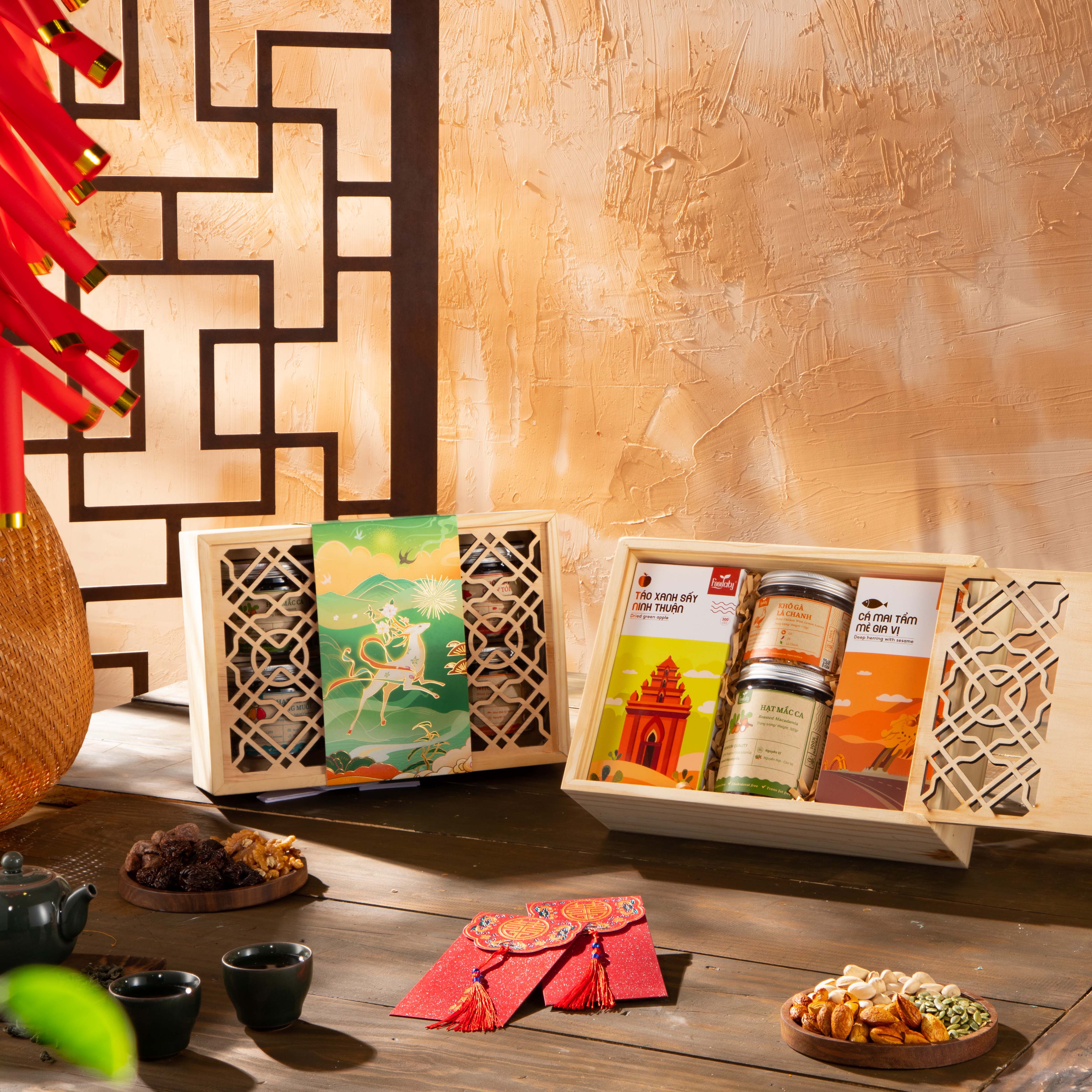 Hình ảnh chú hươu vươn mình hòa cùng tiết Xuân sang chính là biểu tượng của tài lộc, cát tường và thịnh vượng. Hộp quà Tết “Đại Lộc 3” với hộp gỗ khắc CNC tinh tế như một món quà gửi trao đến người nhận những may mắn, thành công, thịnh vượng. Mỗi món quà trao đi là một lời chúc chân thành gửi gắm.